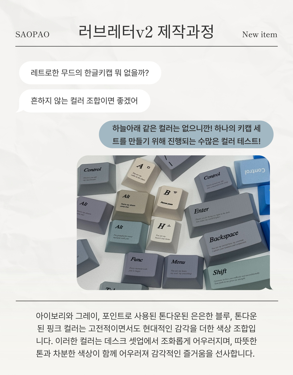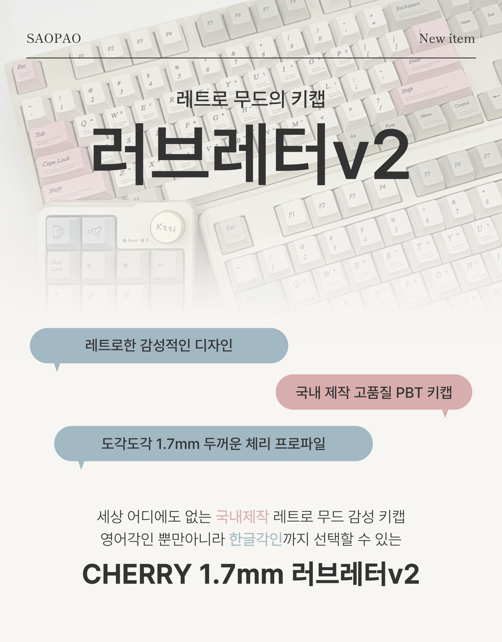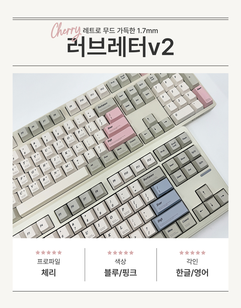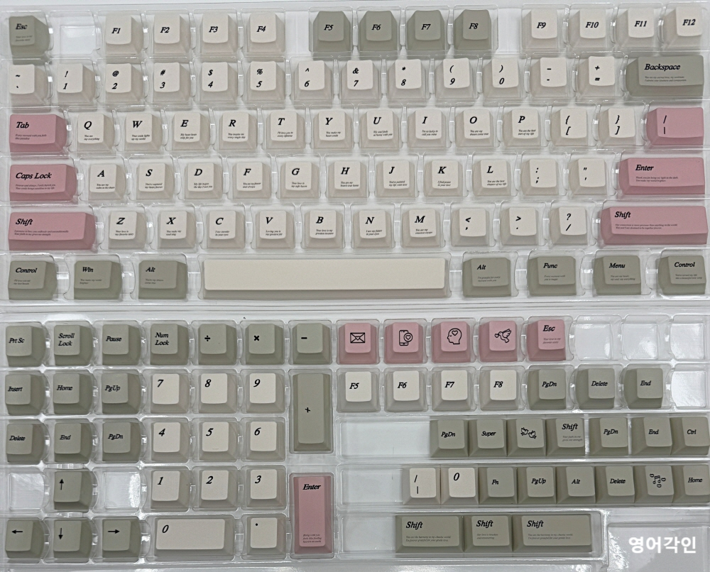 1.7mm 러브레터v2 핑크 한글각인 레트로키캡 PBT 5면 염료승화 한무무 커플키캡
